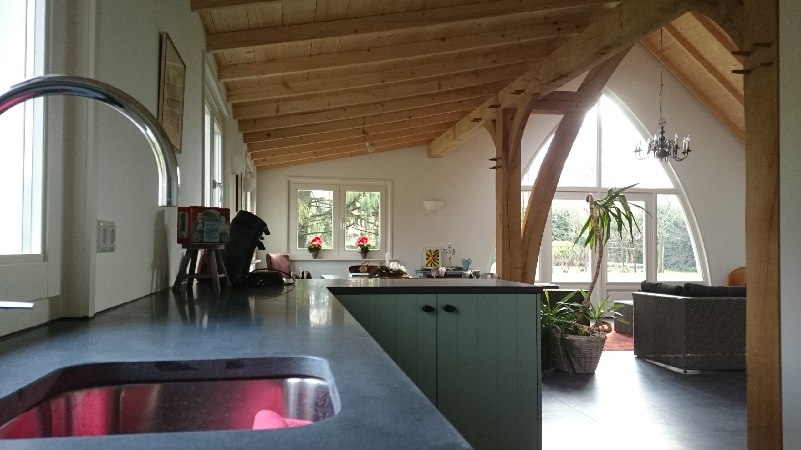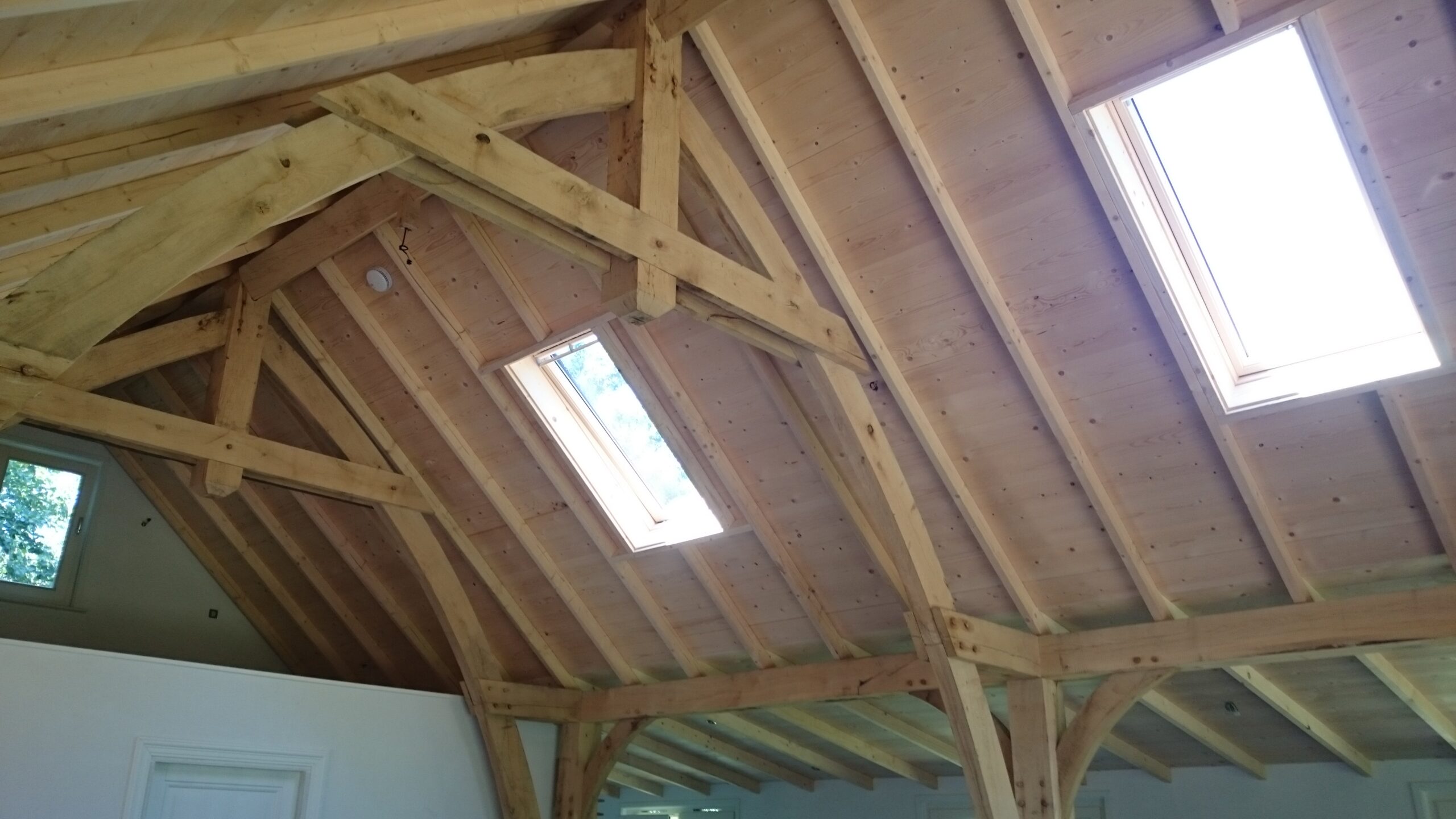 Luxe schuur geheel gebouwd met eiken houten gebint constructie.